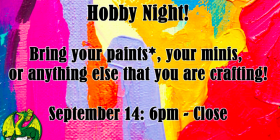 Date: September 14Time: 6pm – Close (Midnight) Join us for our first hobby night! Bring your supplies** and get to Read More…